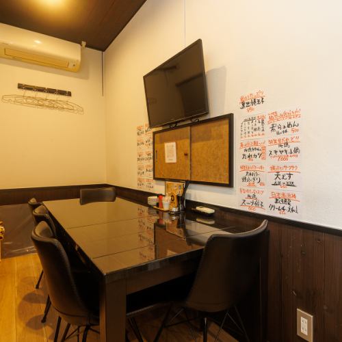 5名様までご利用可能な落ち着いた雰囲気の半個室をご用意しております。設置された大型モニターではスポーツ観戦も可能でございますので、少人数の飲み会や友人との集まりをプライベートな空間で存分にお楽しみいただけます♪